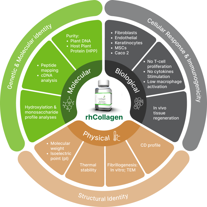 Extensive studies done to characterize the protein at the different stages confirmed its identity to human collagen at the molecular, physical and biological levels.